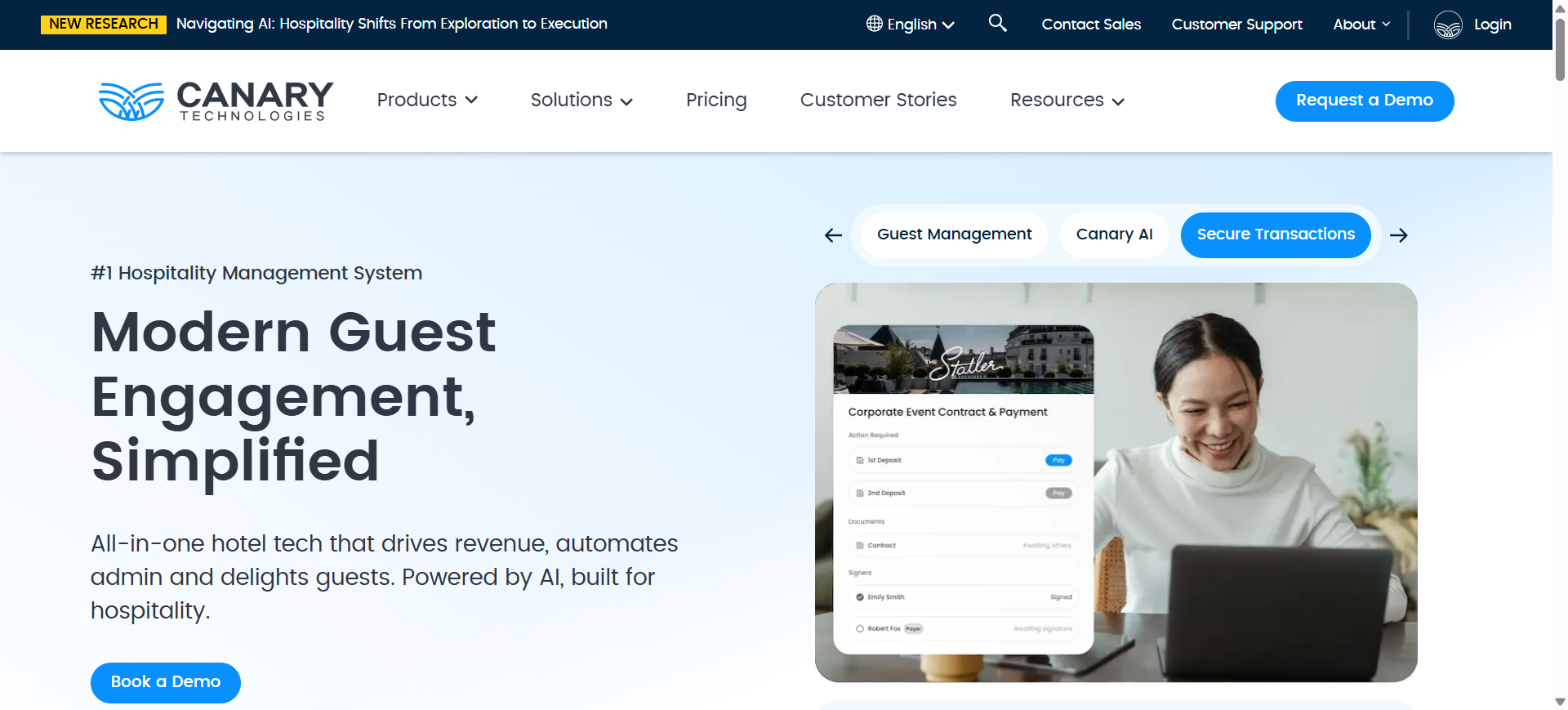 Canary Technologies is a guest experience and hotel operations platform designed to automate communication with guests and streamline hotel workflows. It helps hotels manage messaging, check-in, payments, and upselling through one centralized system. The platform uses AI to respond to guest questions, automate service requests, and improve guest engagement across digital channels. Hotels use it widely to enhance guest experiences and increase operational efficiency.