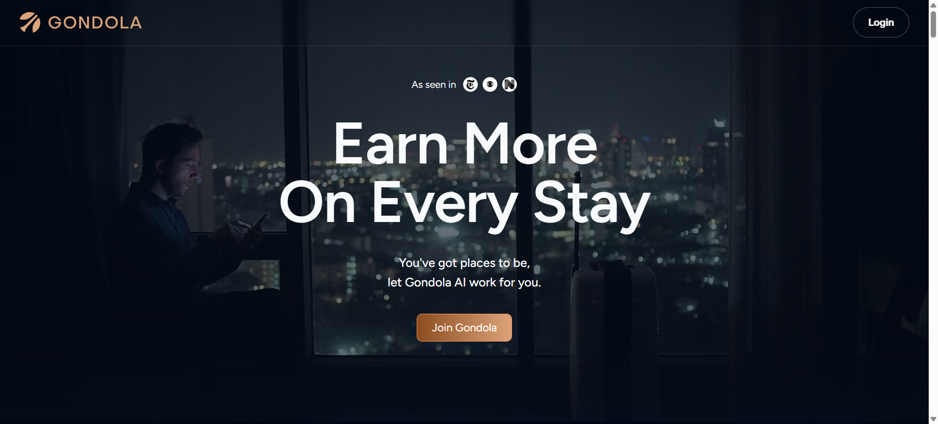 A frequent traveler uses Gondola AI to search hotels in a city. The platform compares the cash price and loyalty-points price across hotel brands and recommends the best option, helping the traveler save money while earning rewards.