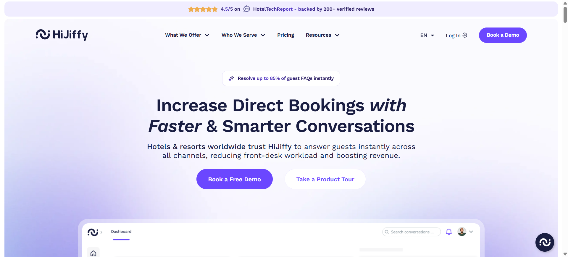 HiJiffy is a hotel chatbot and guest communication platform designed to automate conversations with hotel guests. It works as an AI concierge that answers questions, assists with bookings, and manages guest requests through chat. The tool supports messaging across websites, social media, and apps like WhatsApp. Hotels use it to provide instant responses and automate guest support 24/7.
