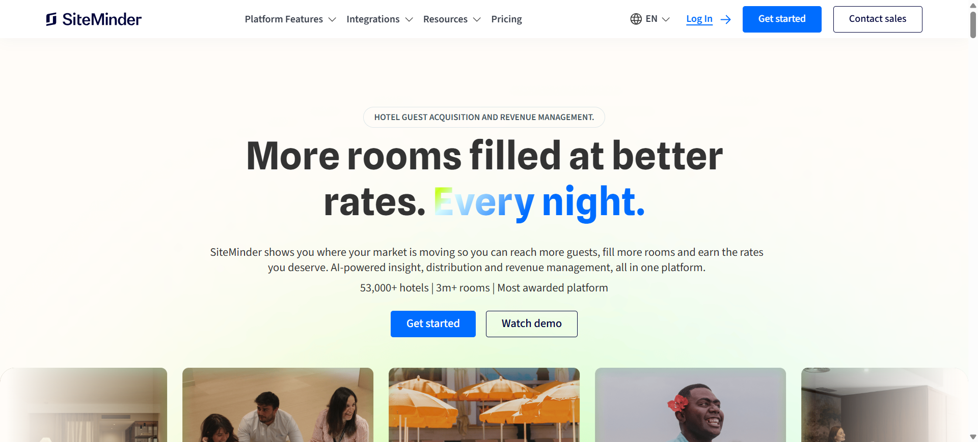 | SiteMinder AI | Hotel distribution platform | Channel management, booking engine | Distribution | Custom |