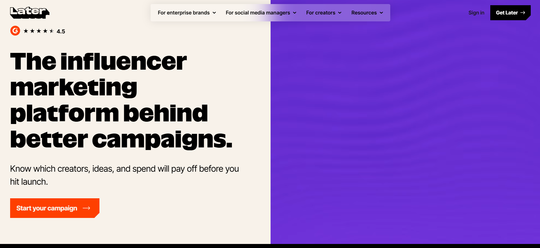 | Later AI | Influencer + social media management | Creator discovery + campaign tracking | Custom pricing | Social marketing platform |
