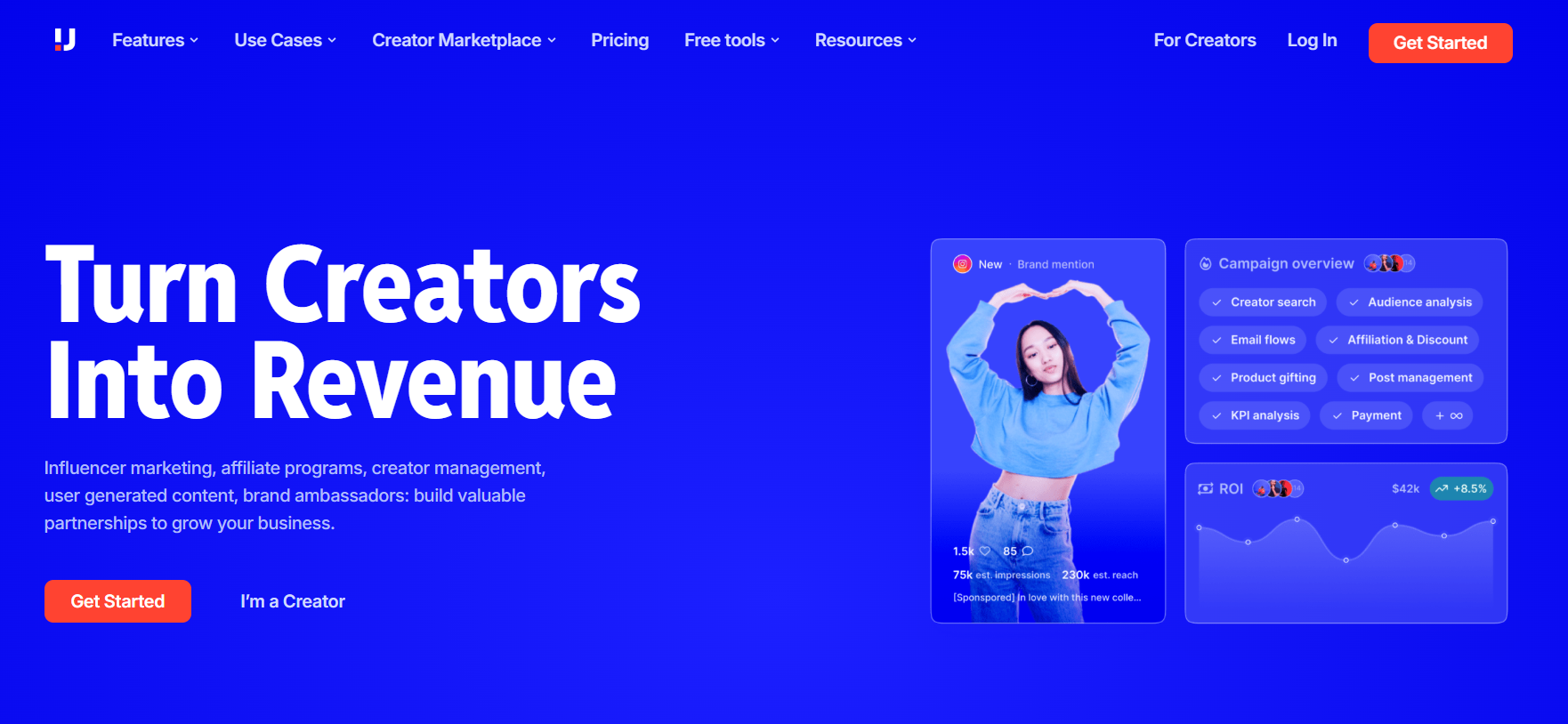 | Upfluence AI | E-commerce influencer programs | AI creator matching, ROI tracking | Custom pricing | All-in-one platform |
