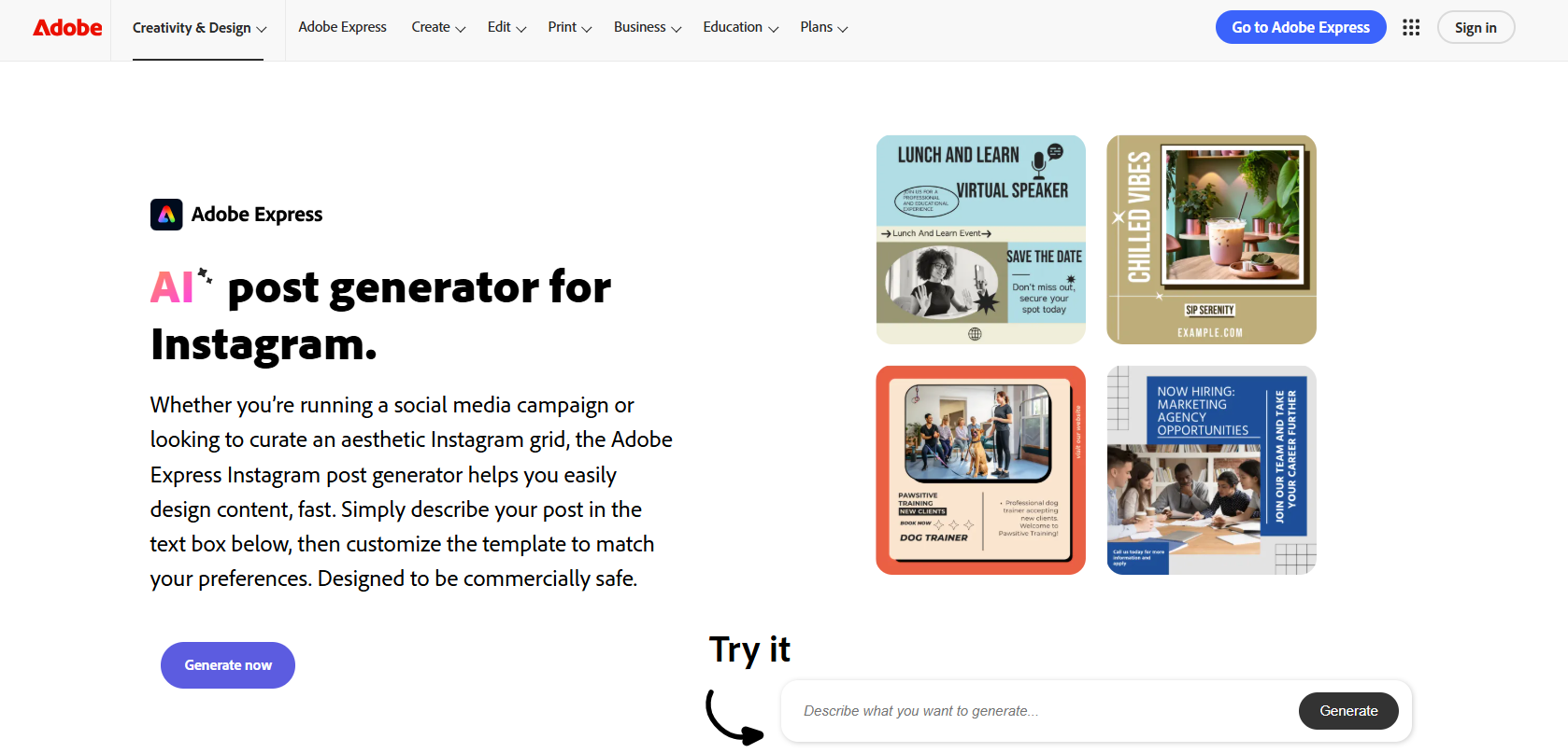 How to use Adobe Express AI for Instagram