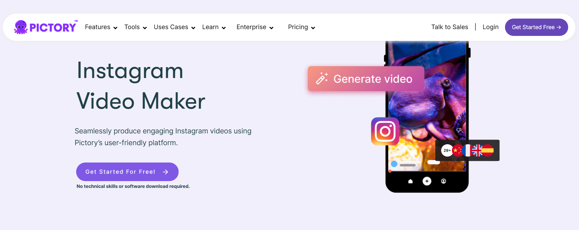 AI video tools convert scripts, prompts, or blog posts into Instagram Reels. These platforms automatically generate scenes, voiceovers, captions, and transitions.