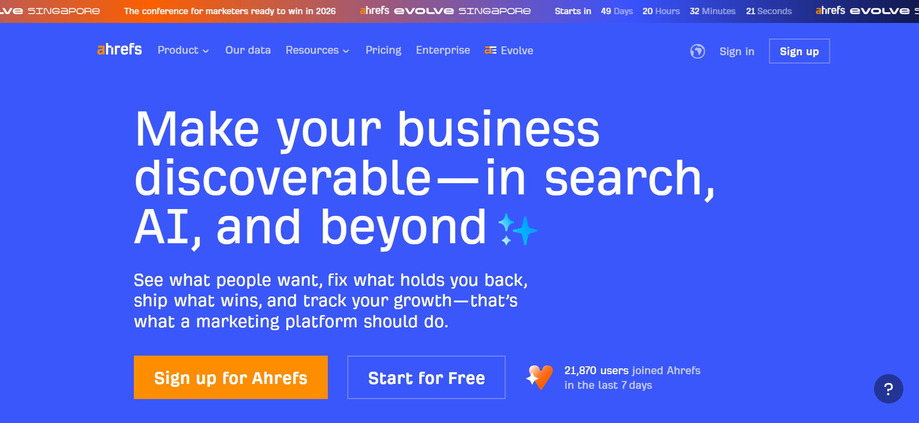 Ahrefs is a backlink intelligence and SEO research platform designed to help marketers discover high-value link opportunities and analyze competitor backlink profiles. The tool uses machine learning and large-scale web crawling to evaluate millions of domains and identify relevant linking sites. Ahrefs AI helps SEO teams uncover link gaps, evaluate domain authority, and prioritize outreach targets efficiently. Its major advantage is one of the largest backlink databases in the industry, allowing users to quickly identify potential backlink sources and competitive link strategies.