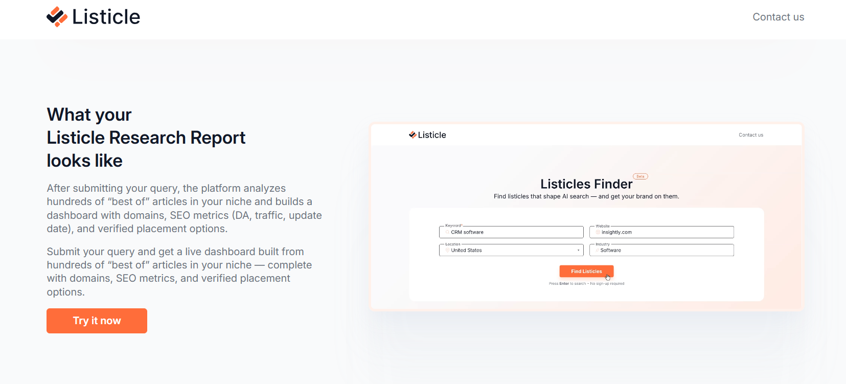 | Listicle AI | Listicle placements | Brand mention discovery | Pay per placement | PR & listicle SEO |