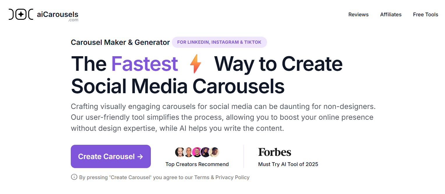 | AICarousels AI | Blog-to-carousel conversion | Visual repurposing | Low | Minimal | Content marketers |