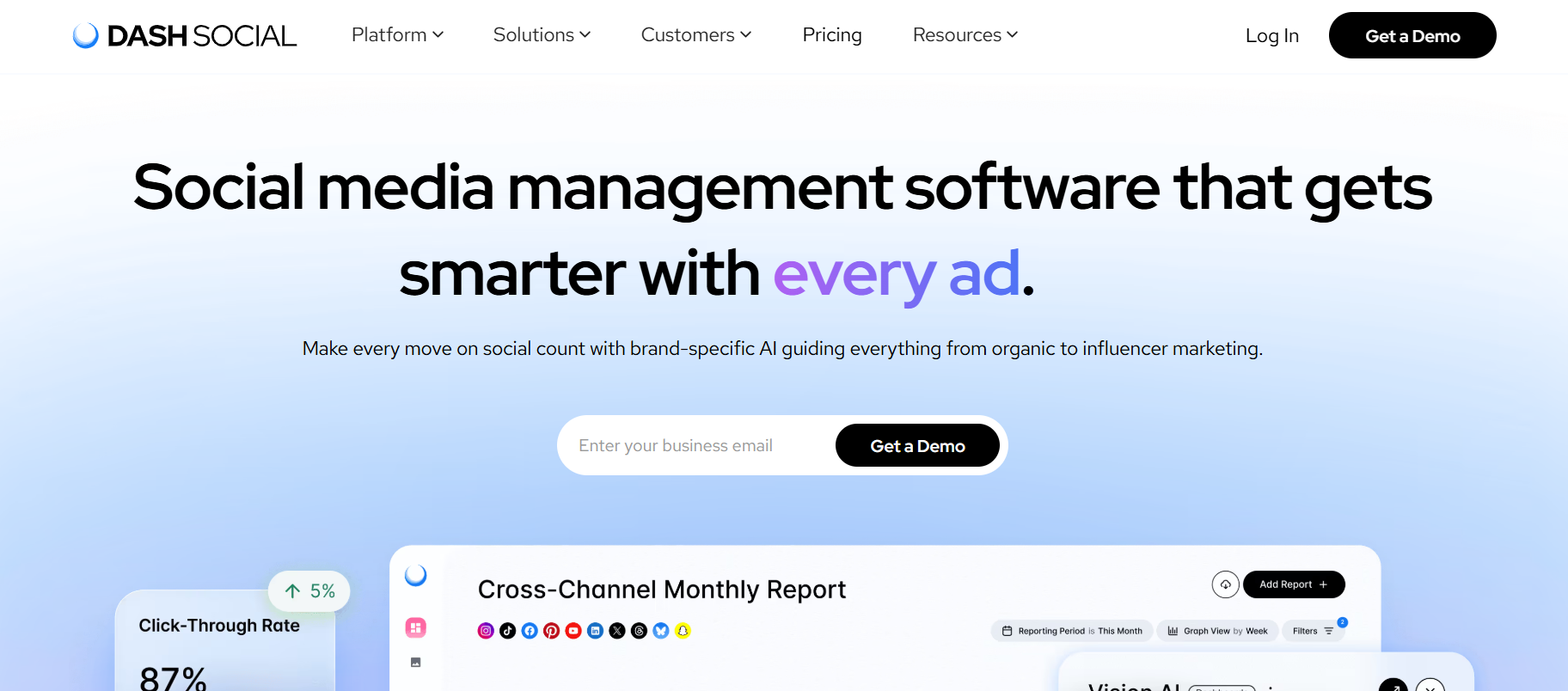 Dash Social offers enterprise-level custom pricing based on features and team size. Plans typically start at around $1,000+ per month, depending on analytics capabilities and platform integrations.