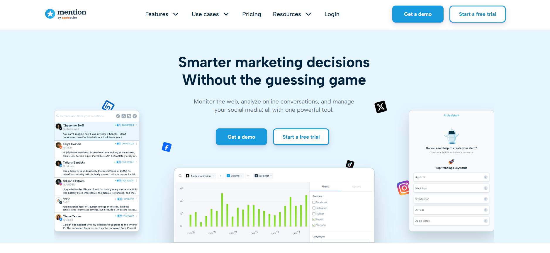 - Monitor brand mentions and engagement trends